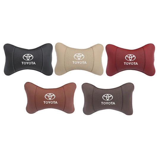1Pcs Car Seat Headrest Auto Logo Neck Pillow For Toyota Hilux Aygo Ractis Caldina Raize Voxy Rush Sienna Sequoia Camry Fortuner