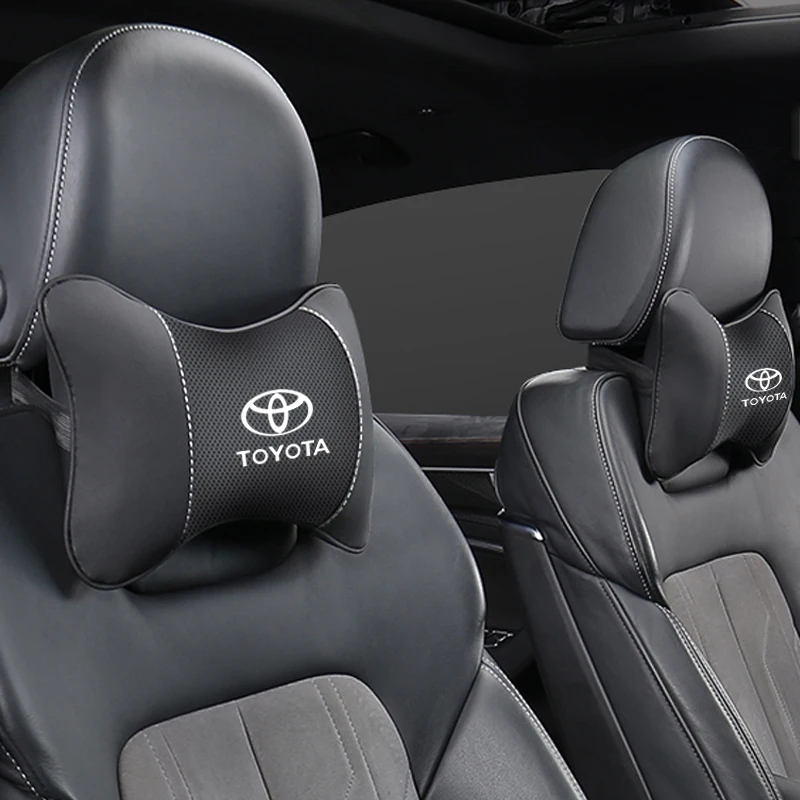 1Pcs Car Seat Headrest Auto Logo Neck Pillow For Toyota Avanza Alphard Scion Vellfire Hilux Aygo Yaris Ractis Corolla Caldina CHR Auris Rav4 Cruiser Prius Tacoma Raize Voxy Rush Sienna Sequoia Camry Venza Aqua Avalon Mark-X Harrier Land Fortuner Prado Highlander Super Verso Avensis Mirai Crown