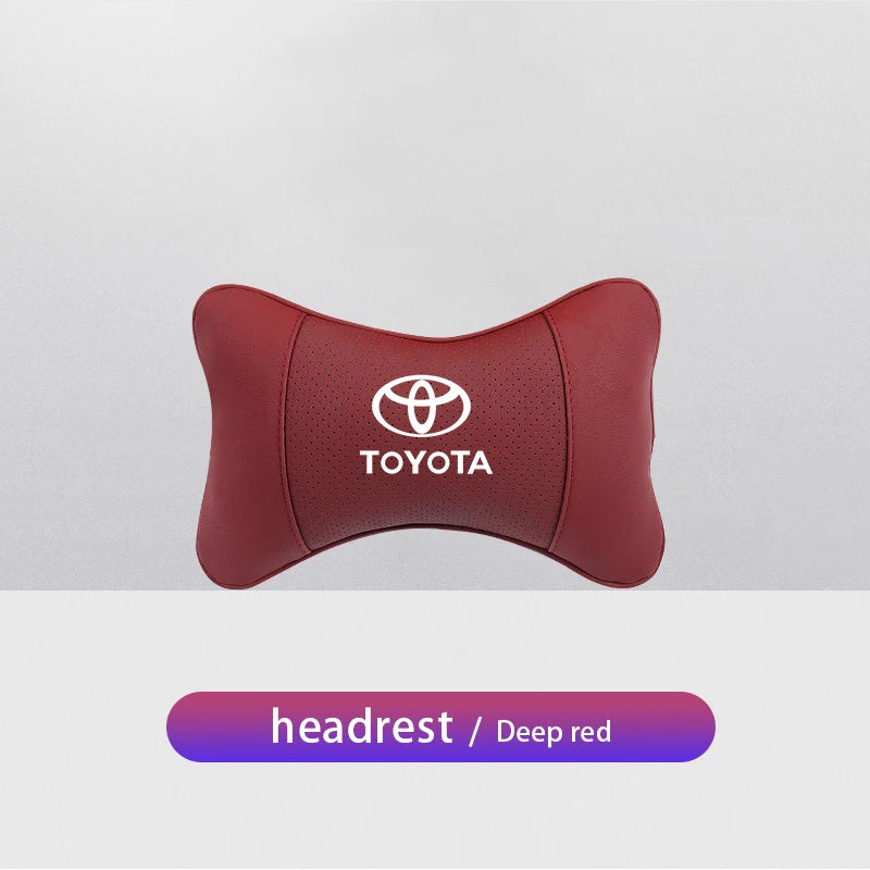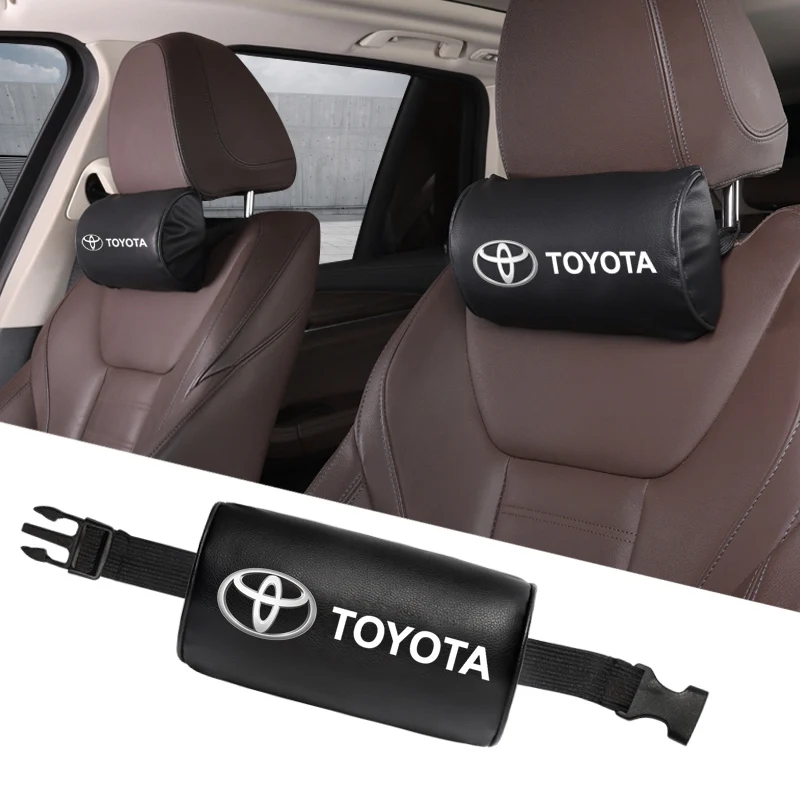 1Pcs Car Seat Headrest Auto Logo Neck Pillow For Toyota Hilux Aygo Ractis Caldina Raize Voxy Rush Sienna Sequoia Camry Fortuner